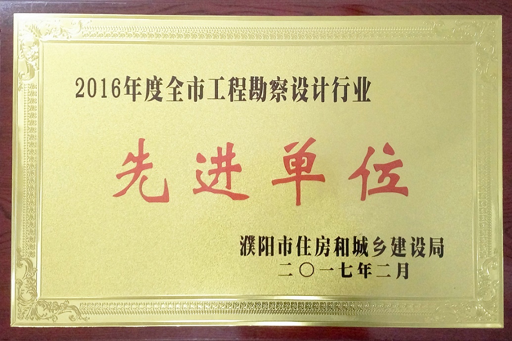 在近日舉行的2016年度全市勘察設(shè)計(jì)行業(yè)先進(jìn)單位評選活動(dòng)中,濮陽市住房和城鄉(xiāng)建設(shè)局勘察設(shè)計(jì)科對全市優(yōu)秀勘察設(shè)計(jì)單位和先進(jìn)個(gè)人進(jìn)行了表彰。我公司榮獲全市“優(yōu)秀勘察設(shè)計(jì)行業(yè)先進(jìn)單位”。同時(shí)我公司資質(zhì)管理人員張存折,被評為“勘察設(shè)計(jì)行業(yè)先進(jìn)個(gè)人”的光榮稱號(hào)!